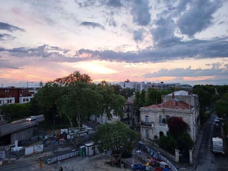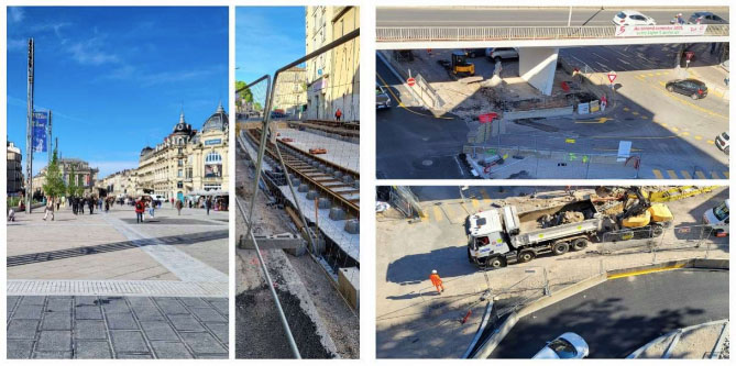 Clear blue skies over Place de la Comedié (below) made it delightful, while the Ligne 5 tram’s rails are starting to go in place (above) and we have seen a lot of Ligne 5 progress right at