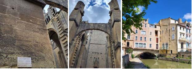 Narbonne is a wonderful city, worth visiting even if Les Grands Buffets is not your cup of tea. It is considerably smaller than Montpellier, but even older, and with wider sidewalks and fewer hills. The Canal de la Robine winds through the old part of the city, and the Cathedrale Saint-Just et Saint Pasteur, begun in