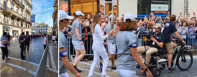 route were lined with barricades and gendarmes (Police Nationale) and the torch bearers were