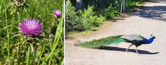 Wildflowers, like this thistle above, are in bloom everywhere; but certainly not peacocks!