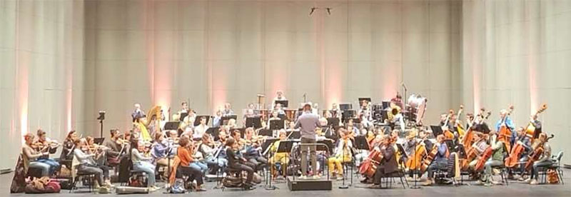 It was a real treat for us on the morning of the last day of January to get up before dawn and take the tram to Le Corum’s Berlioz Hall for the final rehearsal of Opera Orchestre National de Montpellier’s performance tonight, Crossings, with conductor Roderick Cox (an expat from Macon, GA). We had the pleasure of meeting him after the rehearsal.