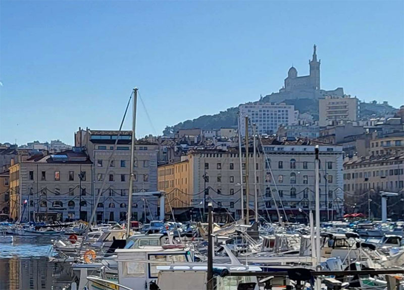 (This picture was taken 16 December 2023 on our first visit to Marseille; the sky was as blue then as it was this time.)