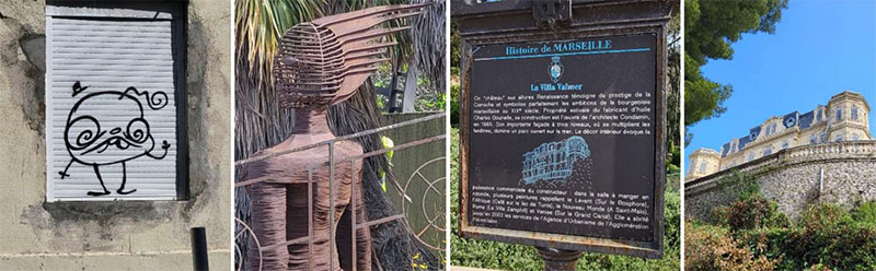 From street art to fine art to the neo-Renaissance Villa Volmer with its park extending to the Corniche and now undergoing renovation by the City of Marseille. The Villa’s park is a garden full of plants in bloom in a virtual rainbow of color everywhere we looked (when we were not looking at Marseille itself and the nearby Mediterranean).