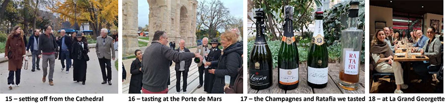 I cannot sign off without acknowledging the photographers whose photos I have used above: Bonny (7) Hande (12) Monica (15, 16, 17 & 19) our server at La Grande Georgette (18) Patrick (23) Sean (28) and our server at L’Alambic (29) I will assume responsibility for having taken the others (unless someone wishes to challenge my assumption) so I hope you will enjoy them.