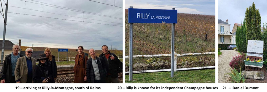 Monday afternoon we went by train to Rilly, about 14 Km (8.5 miles) south of Reims, to visit the maison of Daniel Dumont where they produce their own Champagnes from the grapes they grow in their own vineyards in Rilly.
